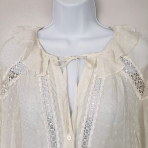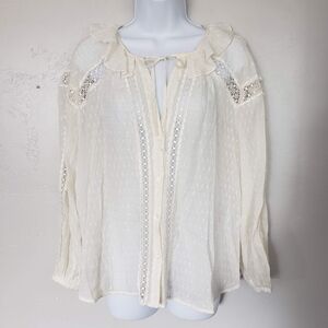 Sandro Women's 2 Ivory Long Sleeve Button Up Blouse Metallic Gold Silk Blend Top