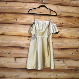 Sandro Womens Gold Off The Shoulder Mini Dress