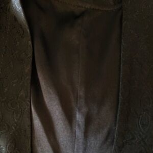 - Material Mid-weight, non-stretchy fabric 100% viscose; lining: 100% silk-- Dry Clean