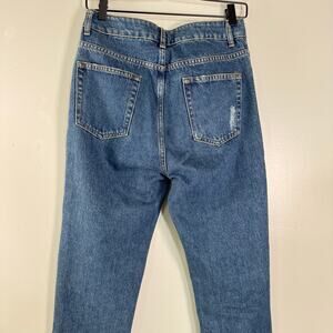 Sandro Women's Blue Distressed High Rise 100% Cotton Straight Leg Jeans Sz 6/38