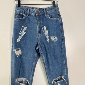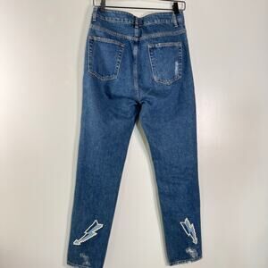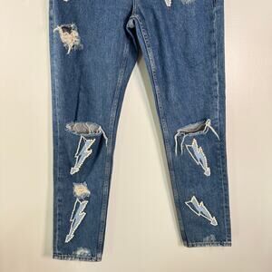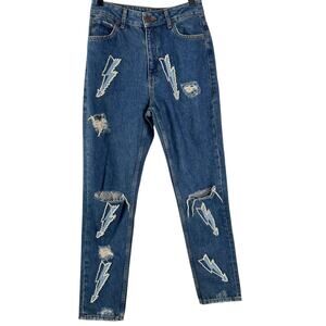 Sandro Women's Rebecca Lightning Bolt Slim Distressed High Rise Jeans Sz 6