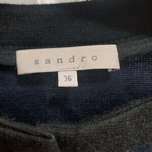 Sandro Wool Navy Blue Black Embossed Button Cardigan