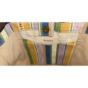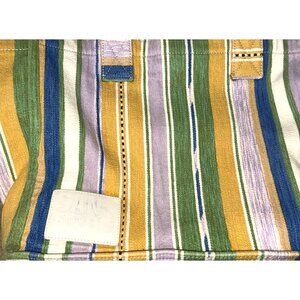 Sandro Yellow Blue Green Striped Canvas Handbag Bag