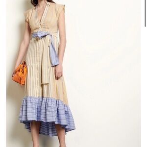 Sandro Yellow and Blue High Low Dress with Tie-Waist, Size 2 (Medium)
