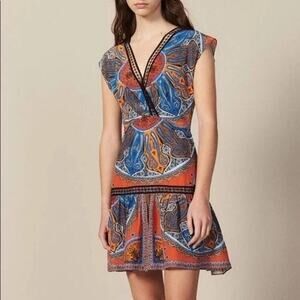 Sandro bandana-print Short-Sleeved Satin Mini Dress size 42 or US 10
