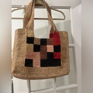 Sold out! Only used a few times! Raffia is beautiful some natural imperfections that come with raffia. This chic woven tote bag features a blend of natural and vibrant colors, perfect for any occasion. Its spacious design and sturdy handles make it ideal for daily use.