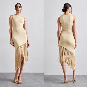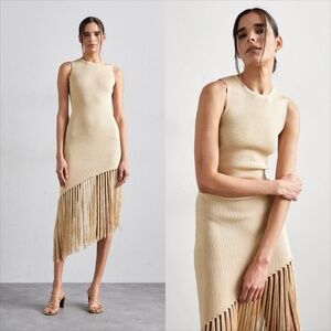Sandro hantas metallic gold fringe hem knit midi asymmetrical dress