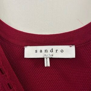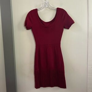 Sandro red knit pleated midi dress. Size 1 / small. Short sleeves and scoop neck. Excellent used condition