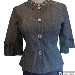 Sandro ruffled jean jacket with 3/4 length sleeve silver tone buttons size S