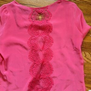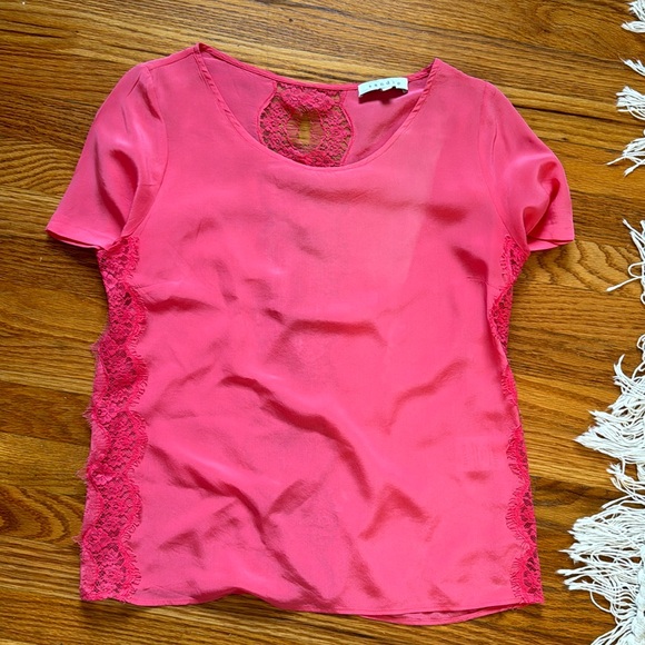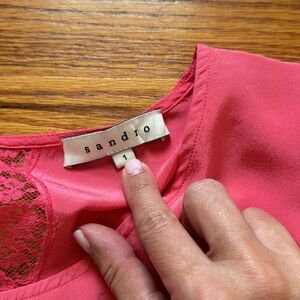 Sandro Silk top with really pretty lace detail in the back and on the side. Slightly lighter color near collar. See picture