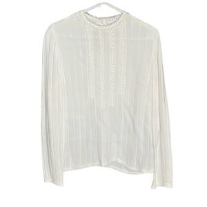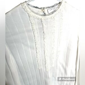 Sandro white viscose textured tuxedo style long sleeve women’s top size 2