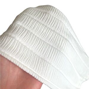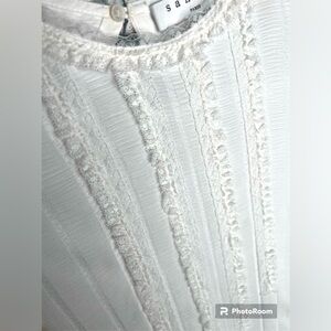 Sandro white viscose textured tuxedo style long sleeve top. White color. 100% viscose. Textured. Has a tuxedo style shirt look in front. Single button and keyhole opening and back. Long sleeve. Women’s size 2 or an extra small. See pictures for approximate measurements. Excellent condition.