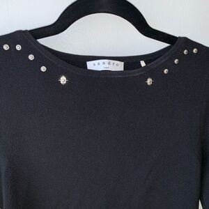 Gently preowned, like-new, never worn Sandro Top. Black with Studded Accents. Pictures don't do this piece justice. The material feels high quality, and the top looks classy and beautiful. Somewhat ribbed material.