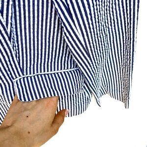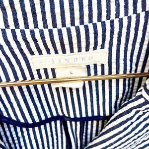 Sandro Navy Blue White Stripped Seersucker Long Sleeve Three Button Blazer