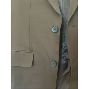 Wool suit jacket with a classic fit, long sleeves, a collar, a two-button fastening, and flap pockets.