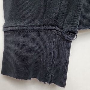 Has two tiny holes on the front and a small tear on the seam of the sleeve. Could be stitched if needed