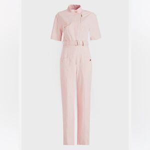 This Sandro jumpsuit in a vibrant pink hue features short flutter sleeves and a flattering V-neckline. The belted waist and wide-leg design offer a chic and comfortable fit, making it a versatile addition to any wardrobe. New, no tags