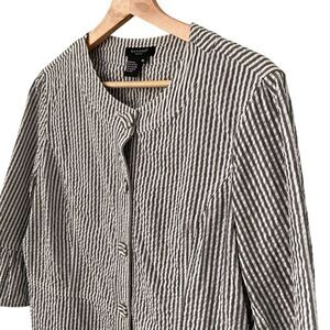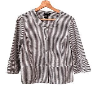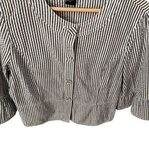 Sandro Sportswear Striped Seersucker Peplum 3/4 Sleeve Blazer Jacket/Blazer 100% Cotton in Size PL