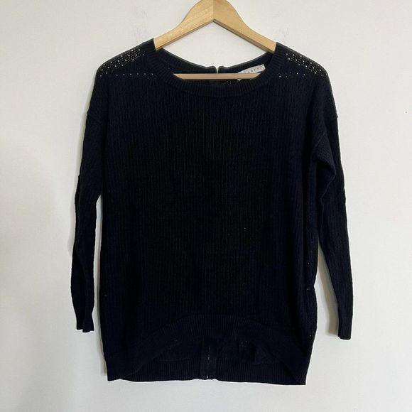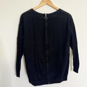 Sandro Womens Back Zip Scoop Neck Open Knit Sweater Black Cotton Size 1 Paris.