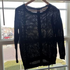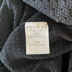 Sandro Womens Sweater Back Zip Scoop Neck Open Knit Black Cotton Size 1 Paris