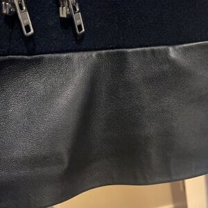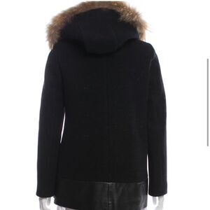 Sandro Leather Trimmed Wool Jacket wit Fox Fur Hood. Size 36 Preloved Condition