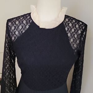like new condition. worn once. ruffles around collar. side zipper. gorgeous dress in person! sheet lace sleeves