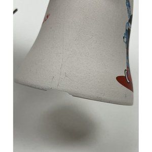 Hand painted child on front with number 492. Red bow on top with a white and gold hanger string and wire hook. Red Bead and gold string on inside.