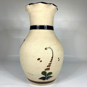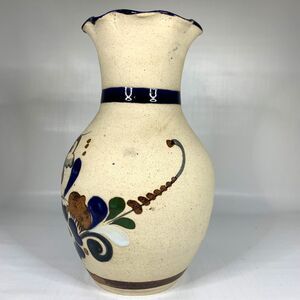 Sandstone Tonala Folk Art Vase Signed Pottery Bird Floral Cobalt Rim Vintage Ethnic Measures approx. 9" tall No chips or cracks (see photos for details)