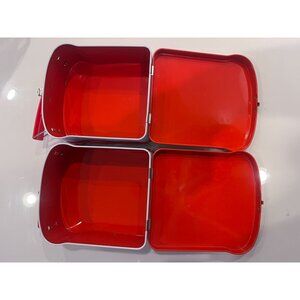 Sandwich Defender Tin Lunch Boxes Set Of 2 With Red Handles & Bear Graphic
