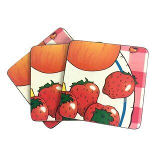 Add a touch of quirky pop art to your dining table with these vibrant cork-backed coasters, featuring a fun sandwich and fruit design.