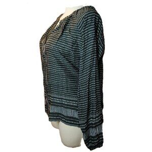 Add effortless style to your wardrobe with this chic Sandwich lightweight blouse in a flattering size 12. Featuring a unique green background with white dot and stripe patterns, this long sleeve top is perfect for work, travel, or casual outings.