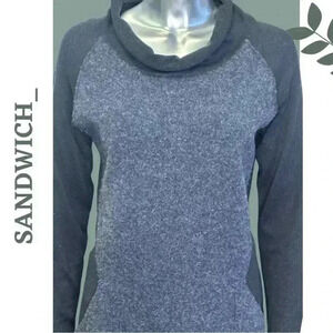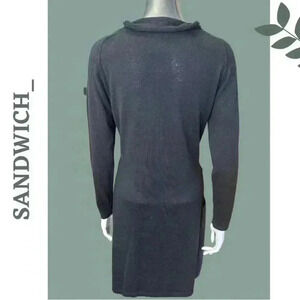 Sandwich Long Sleeve Knit Wool Blend Dress Color Block Detail Scoop Neck Medium