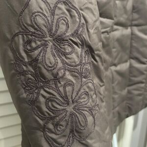 Lovely flower embroidered pattern on the elbows. Logo on the front lower left