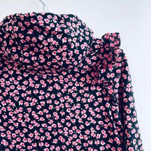 Sandy Liang x Target Pink Ditsy Floral Ruffle Sleeve Hoodie Sweater Black
