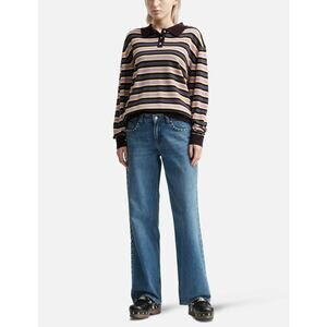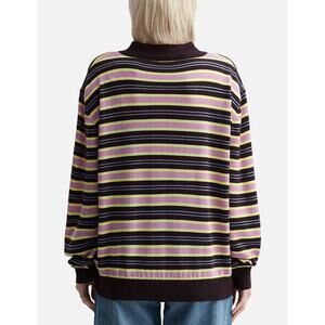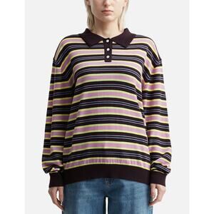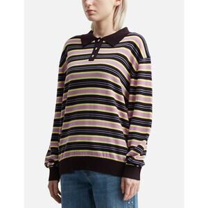 Sandy Liang Woods Stripe Merino Wool Polo Sweater - XL