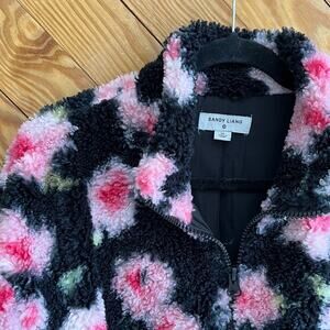 SANDY LIANG X TARGET | Pink and Black Floral Baggy Oversized Sherpa Half Zip