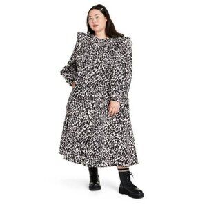 Sandy Liang x Target Long Sleeve Ruffle Midi Leopard Print Dress - Size 4X