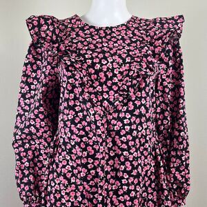 Sandy Liang x Target Womens Size S Cotton Pink Floral Ruffle Midi Dress Pocket