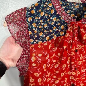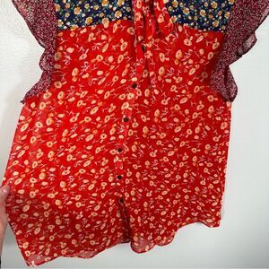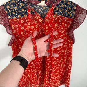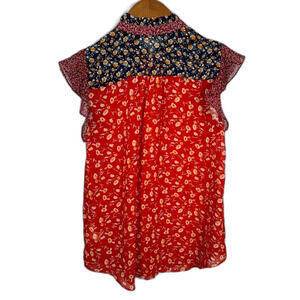 Sandy & Sid Red Floral See-Through Lightweight Sleeveless Blouse Size Small