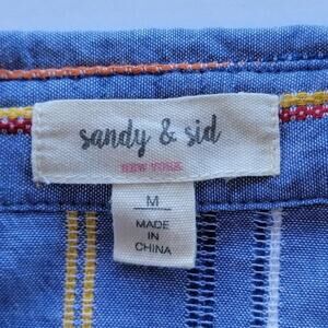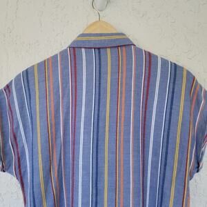Sandy & Sid Striped Knot Button Down Blouse Womens Size M Blue Multi Cropped