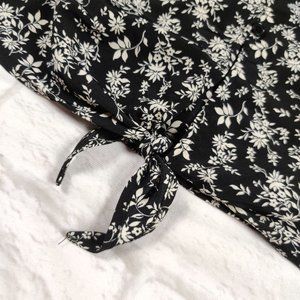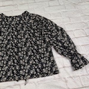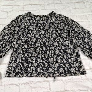 Sandy & Sid womens button down flounced long sleeve shirt black floral top sz M