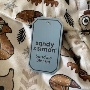 Sandy & Simon Forest Friends Baby Swaddle Blanket 3-6 Months Fleece Bear Fox New