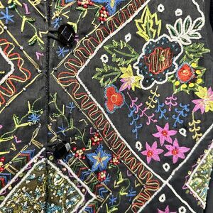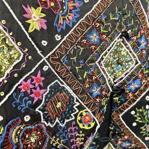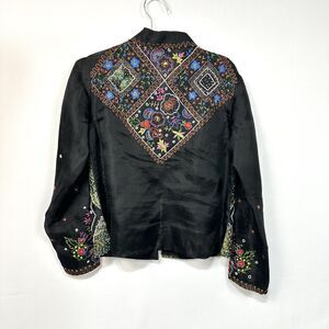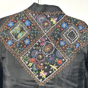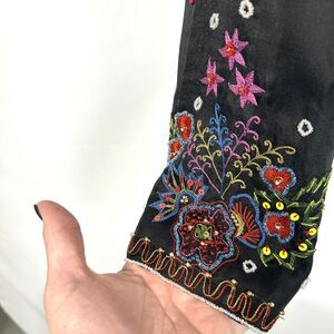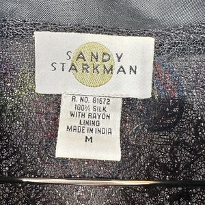Sandy Starkman Silk Embroidered Beaded Blouse Women's Size Medium Black