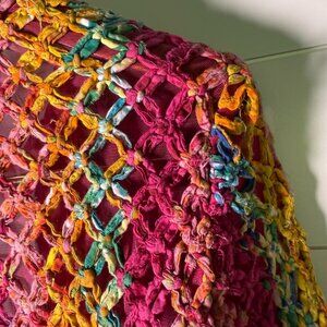 Sandy Starkman Sz L Funky Maximalist Colorful Y2K Woven Ribbon Textile Jacket
