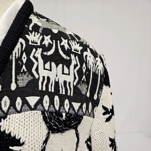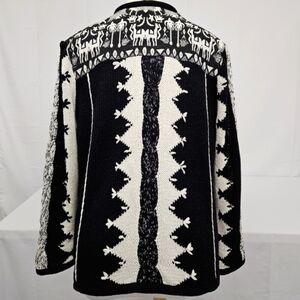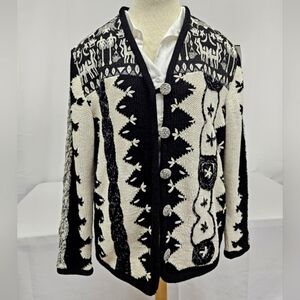 Sandy Starkman Vintage Cotton Western Cardigan Sweater In Cream And Black Sz Lrg