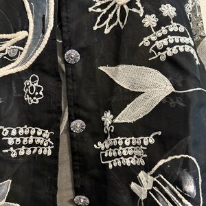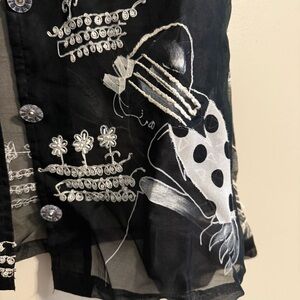EUC with no flaws. Beautiful Sandy Starkman lightweight jacket. Abstract art to wear with mixed textiles. Please see photos for measurements