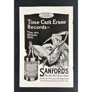 Sanford's Writing Fluid "The Ink That Never Fades" Vintage Print Ad 1920
