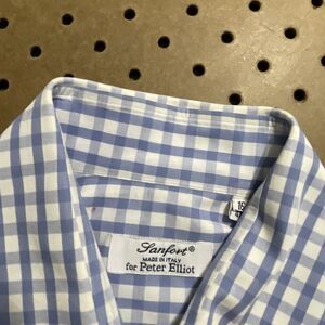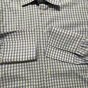 Sanfort LS Button Up Shirt Mens 16/41 Peter Elliot French Cuff Italy Plaid Blue