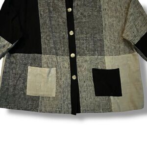 Sangam Lagenlook Jacket Top Patchwork Button Up Pockets Minimalist Cotton Large