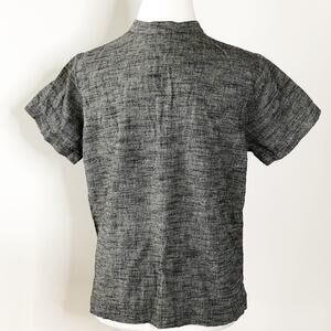 Sangam Womens Top Medium Button Front Dark Grey Mandarin Collar